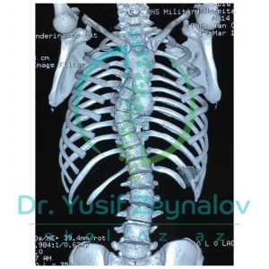 İDİOPATİK SKOLİOZ “S” TİP. COBB BUCAĞI TH-57°, TH-L-34°